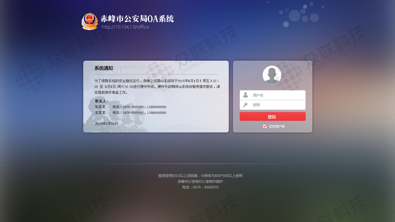 歡迎進入赤峰市眾聯(lián)科技有限公司! 地址:赤峰市紅山區(qū)昭烏達路匯豐商務(wù)三層眾聯(lián)科技有限公司 聯(lián)系電話:0476-8337811 15904760137 微信號:cfzlkj 工作時間:8:00-17:30